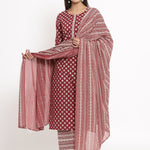 Cotton Block Print Straight Kurta Palazzo Dupatta