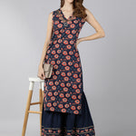 Cotton Floral Print Straight Kurta Sharara Set (Multicolour)