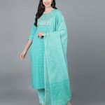 Cotton Leheriya Print Straight Kurta Set (Blue)