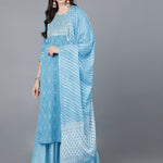 Cotton Lehriya Print Straight Kurta Set (Blue)