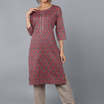 Cotton Blend Printed Straight Kurta Set (Pink)