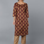 Cotton Blend Printed Straight Kurta Set (Maroon)