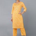 Cotton Blend Printed Straight Kurta Set (Yellow)