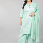 Cotton Printed Straight Kurta Set (Sky Blue)