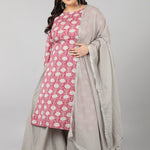 Cotton Printed Regular Kurta Set (Grey & Pink)
