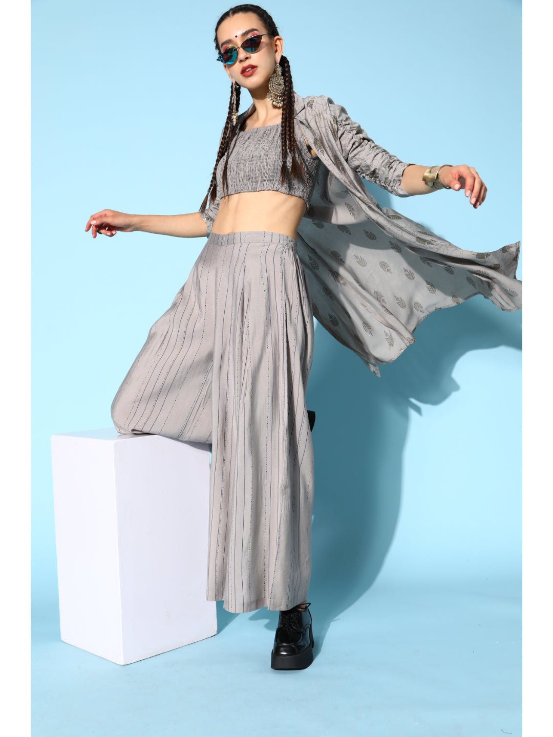 Closure - Sleevesless Crop Top And Palazzo Comes With Shrug
