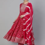 Cotton Mirror Work Anarkali 3/4 Sleeve Round Neck Calf Length Kurta Set (Preorder)