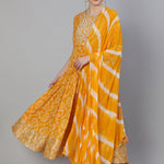 Rayon Mirror Work Anarkali 3/4 Sleeve Round Neck Calf Length Kurta Set (Preorder)
