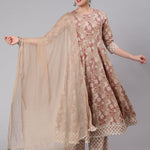 Cotton Calf Length Printed Flared 3/4 Sleeve Round Neck Kurta Set (Preorder)