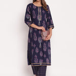 Floral Print Rayon Straight Kurta Pant Set (Navy Blue) (Pre-Order)