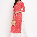 Gota Patti Work Cotton Straight kurta Skirt Set (Red,White) (Pre-Order)