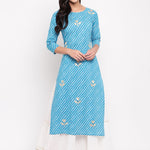 Gota Patti Work Cotton Straight kurta Skirt Set (Sky Blue,White) (Pre-Order)