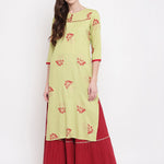Gold Printed Rayon Straight kurta Skirt Set (Green,Maroon) (Pre-Order)