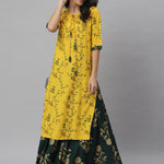 Printed Rayon Straight kurta Skirt Set (Mustard,Dark Green) (Pre-Order)