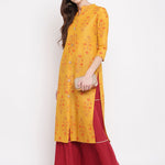 Floral Print Cotton Straight kurta Skirt Set (Mustard,Maroon) (Pre-Order)