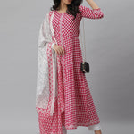 Printed Cotton A-Line Kurta Dupatta Set (Pink) (Pre-Order)