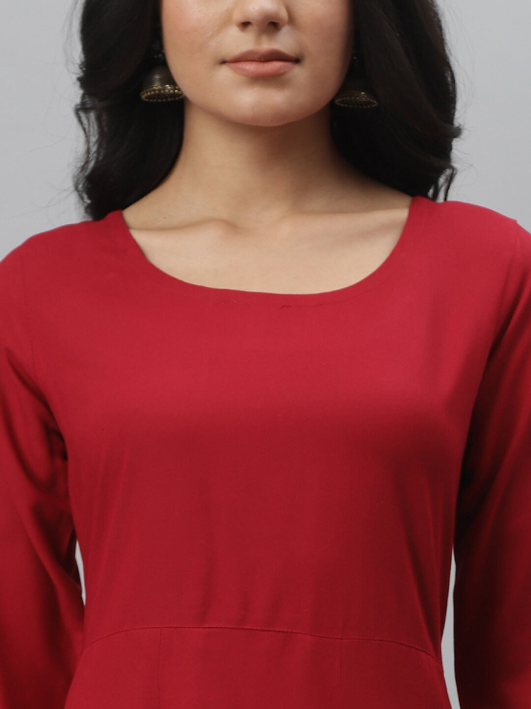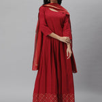 Gold Print Rayon Flared Kurta Dupatta Set (Maroon) (Pre-Order)