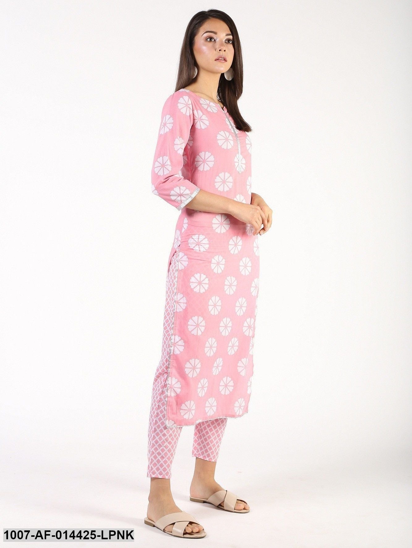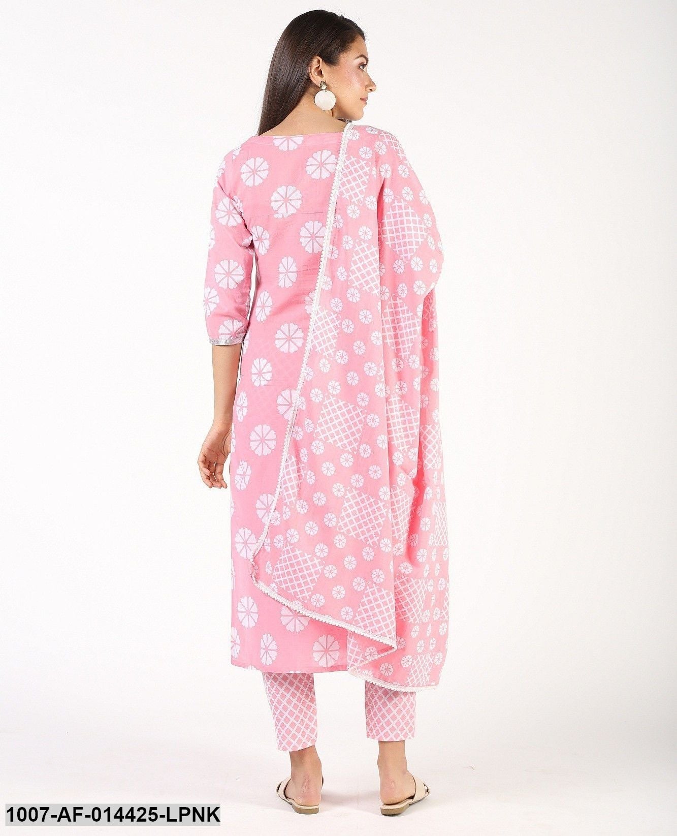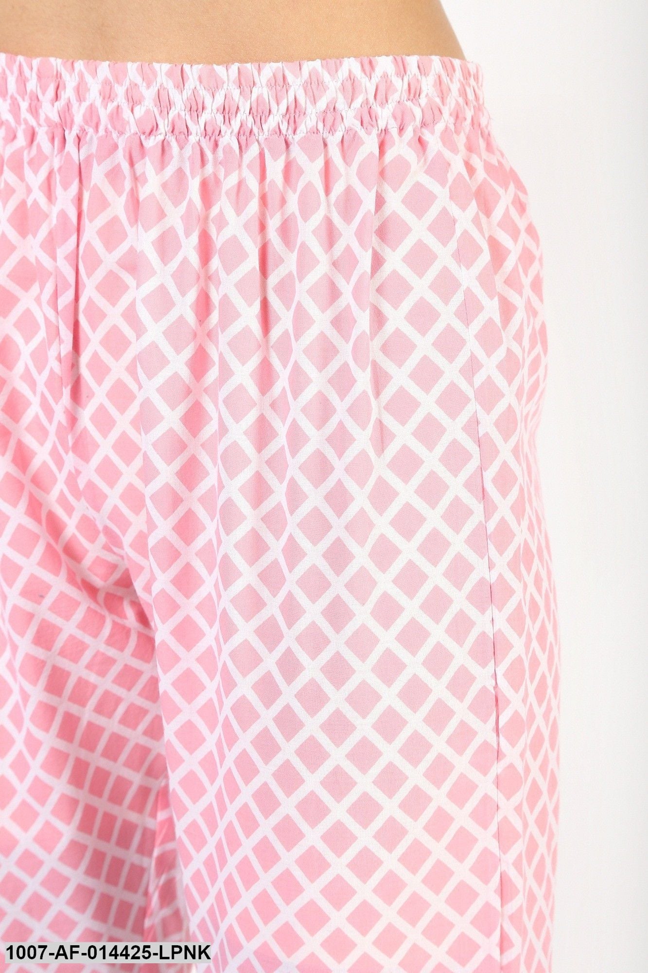 Checks Print Cotton Straight Kurta Pant and Dupatta Set (Pink) (Pre-Order)
