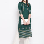 Hand Block Print Cotton Straight Kurta Pant Set (Dark Green,White) (Pre-Order)