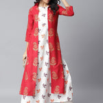 Printed Kurta with Jacket (Red,White) (Pre-Order)