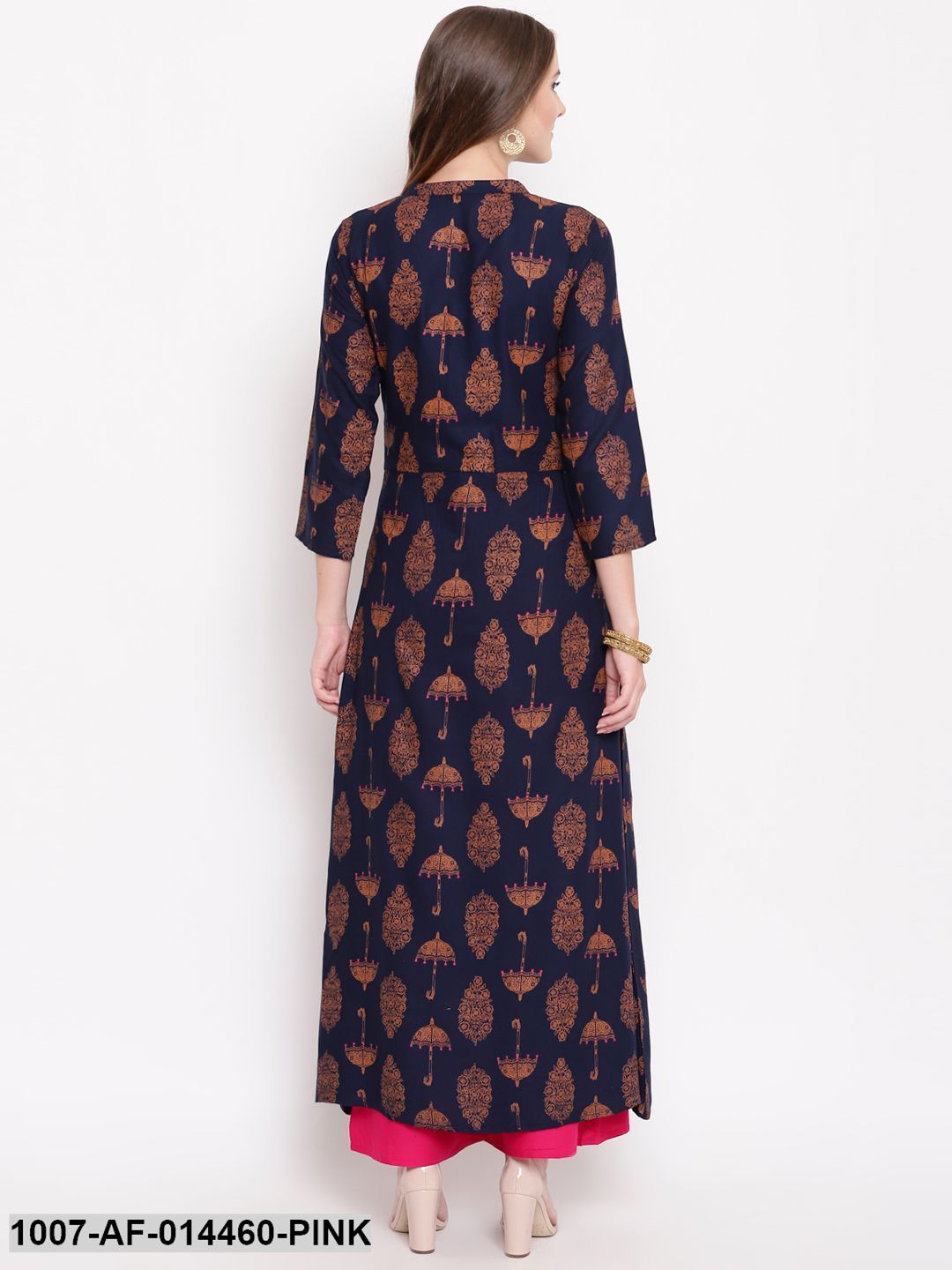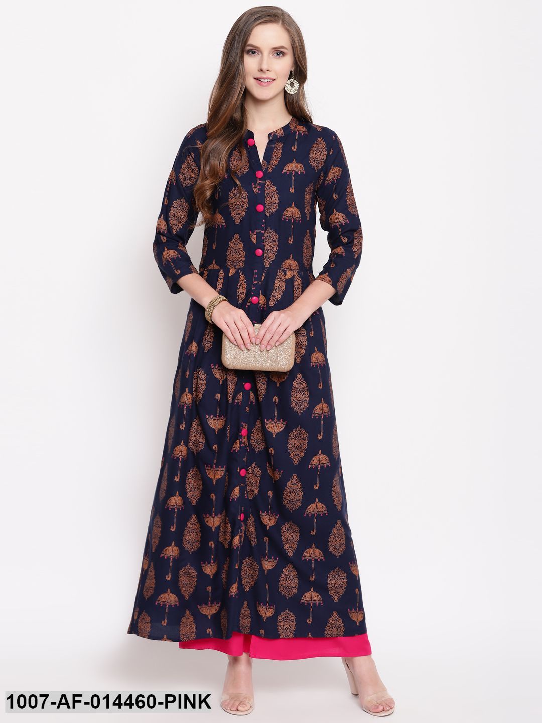 Umbrella Print Rayon A-Line Kurta Palazzo Set (Navy Blue,Pink) (Pre-Order)