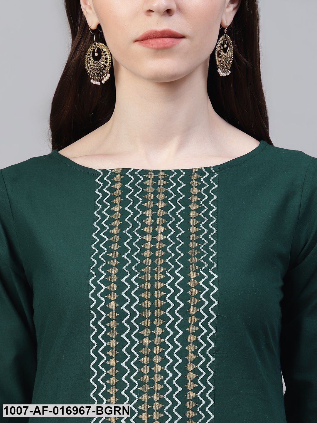 Printed Cotton Straight Kurta Pant Dupatta Set (Dark Green) (Pre-Order)