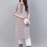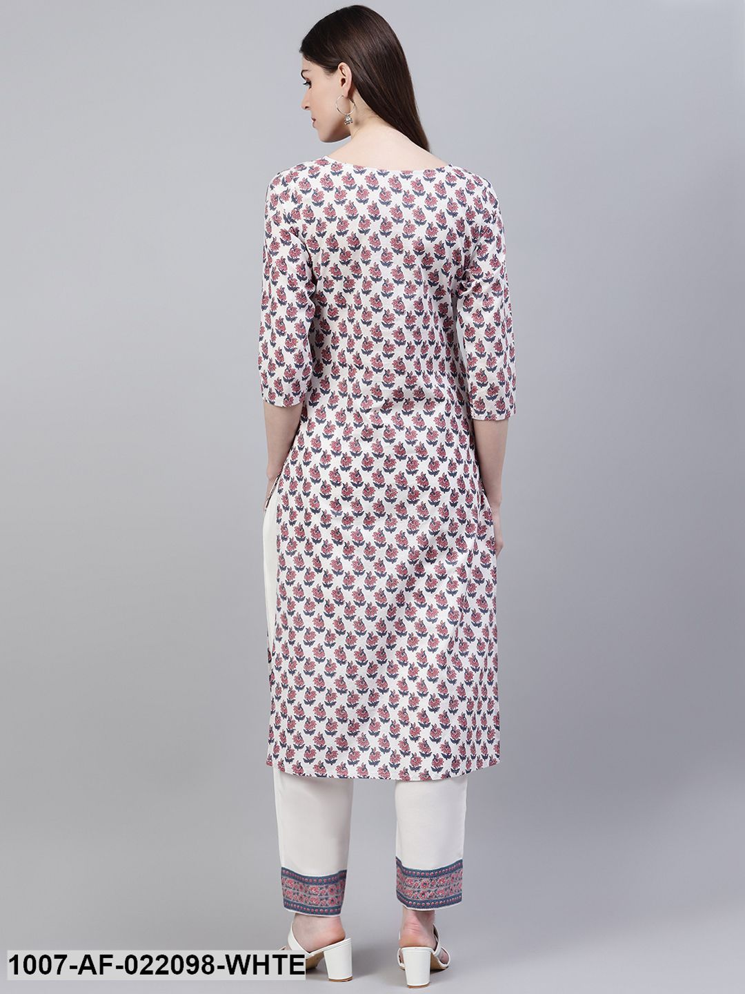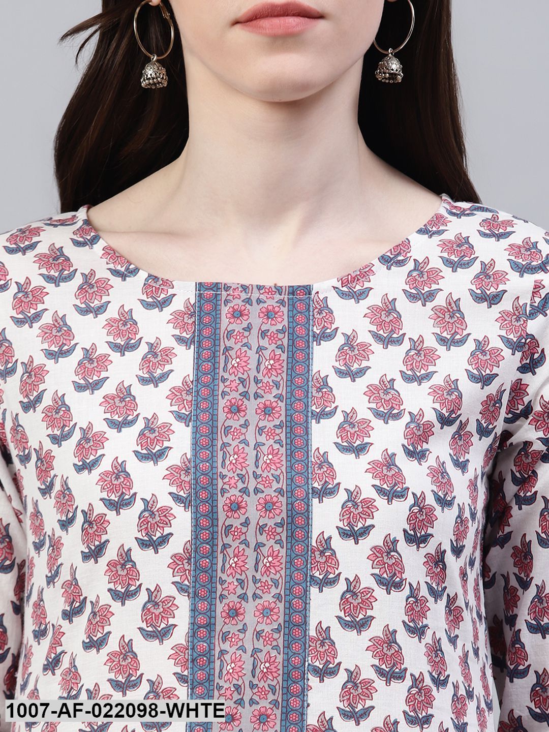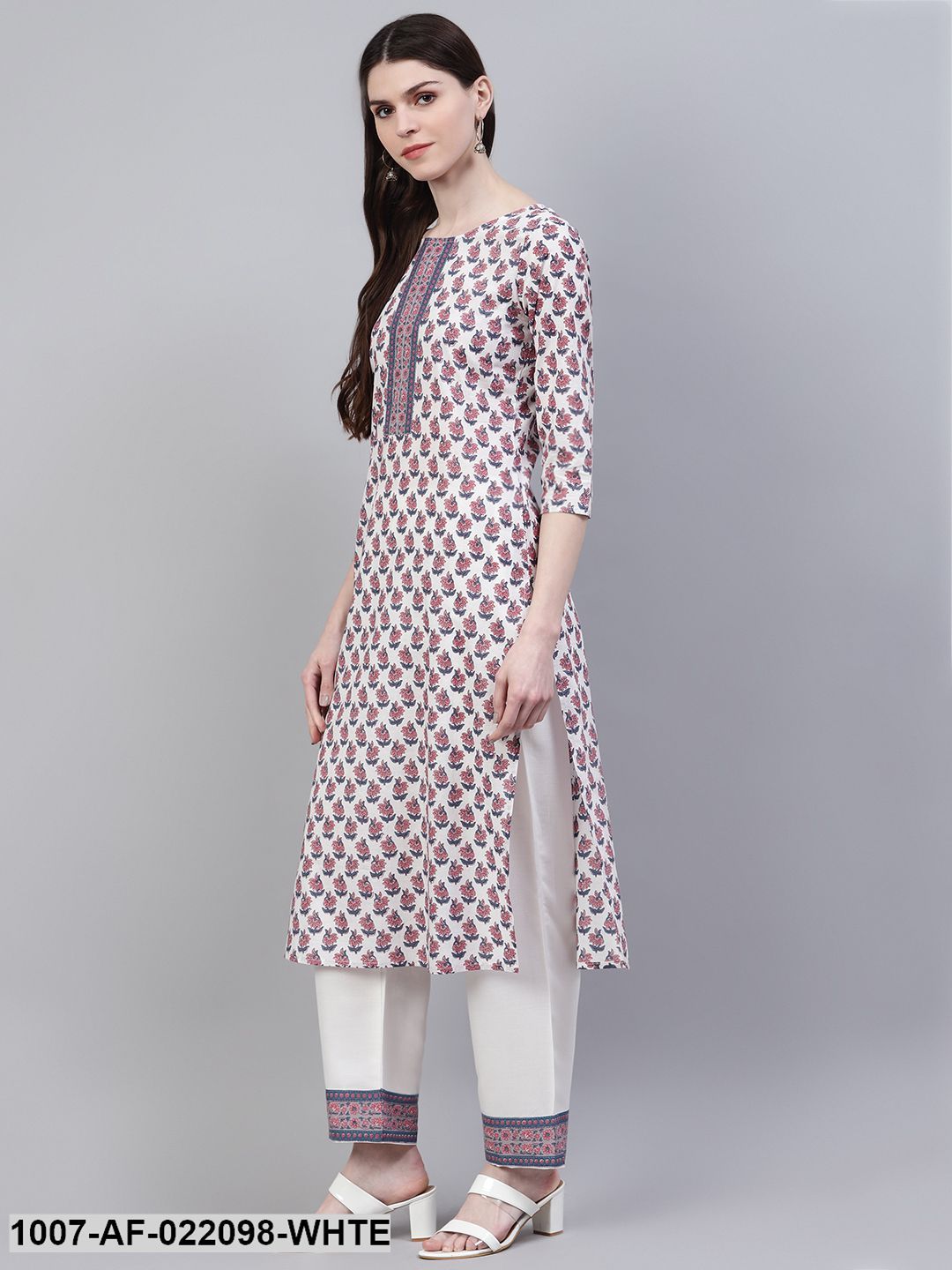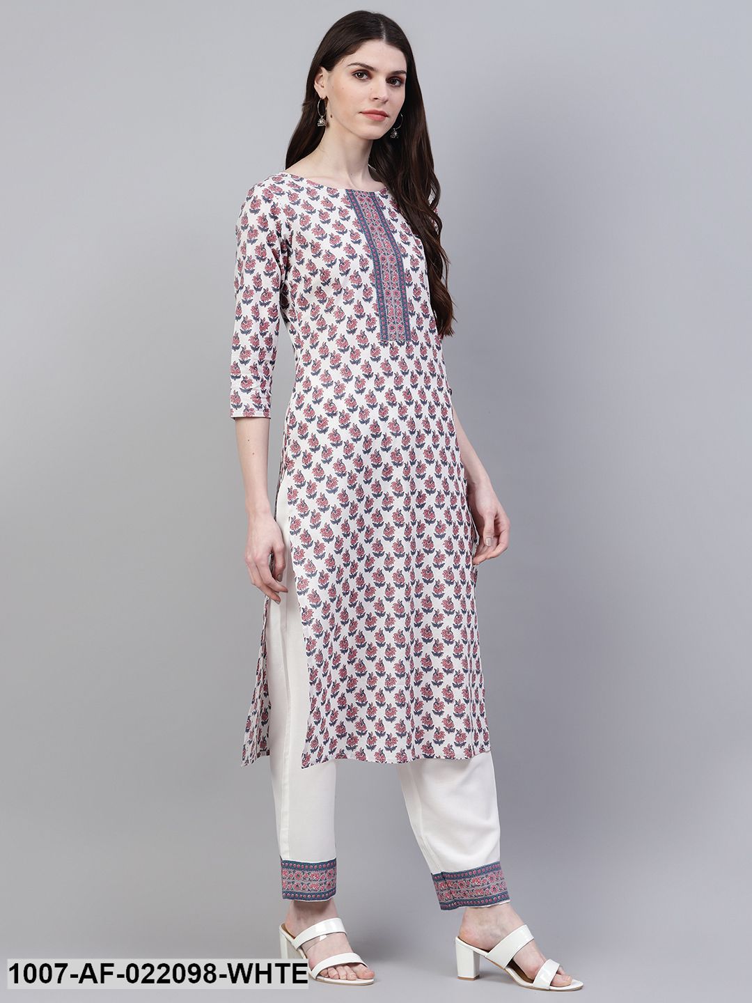 Women's Floral Print Cotton Straight Kurta Pant Set (White) (Pre-Order)