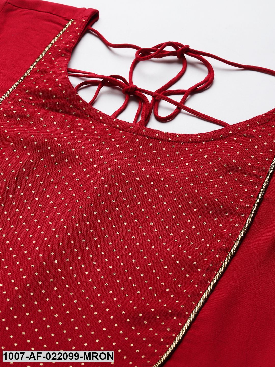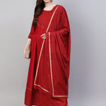 Women's Gold Print Rayon Flared Kurta Dupatta Set (Maroon) (Pre-Order)