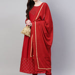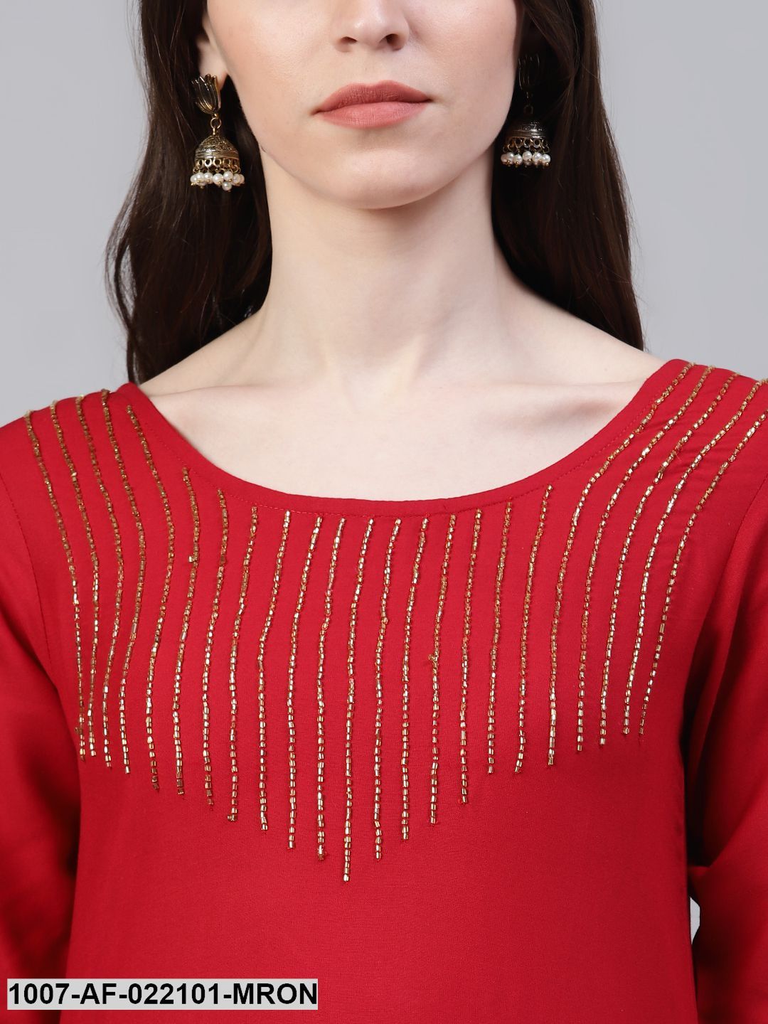 Women's Embroidered Rayon Flared Kurta Dupatta Set (Maroon) (Pre-Order)