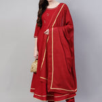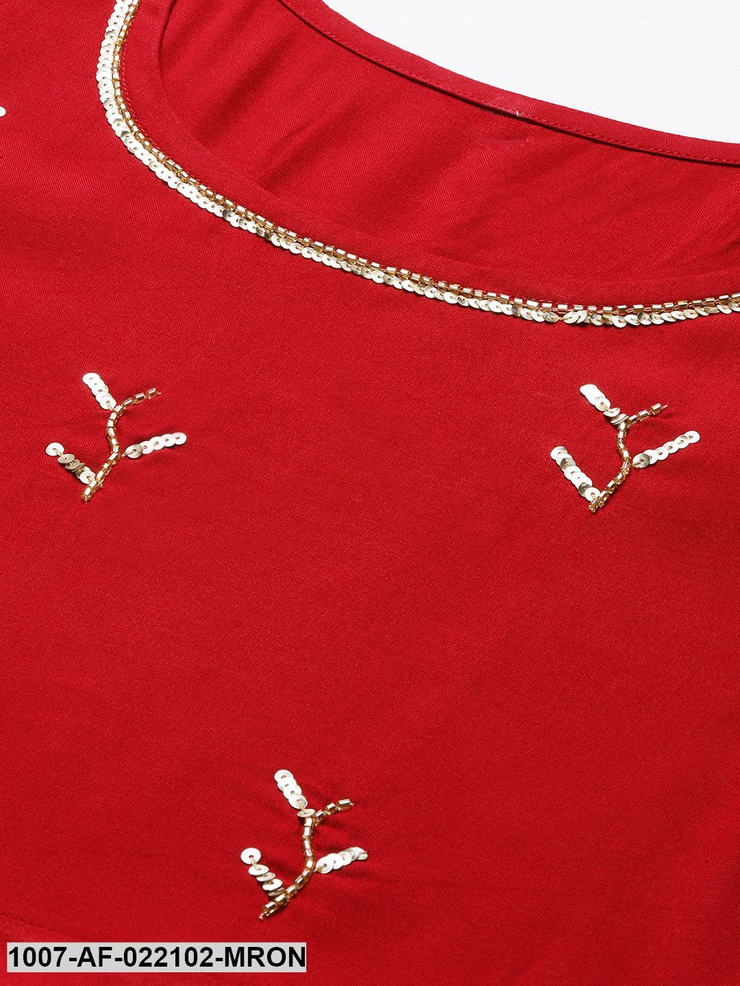 Women's Embroidered Rayon Flared Kurta Dupatta Set (Maroon) (Pre-Order)