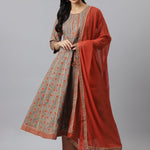 Floral Printed Cotton Anarkali Kurta with Pant & Dupatta (Pre-Order)