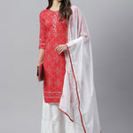 Bandhani Print Rayon Straight Kurta Sharara Dupatta Set (Pre-Order)