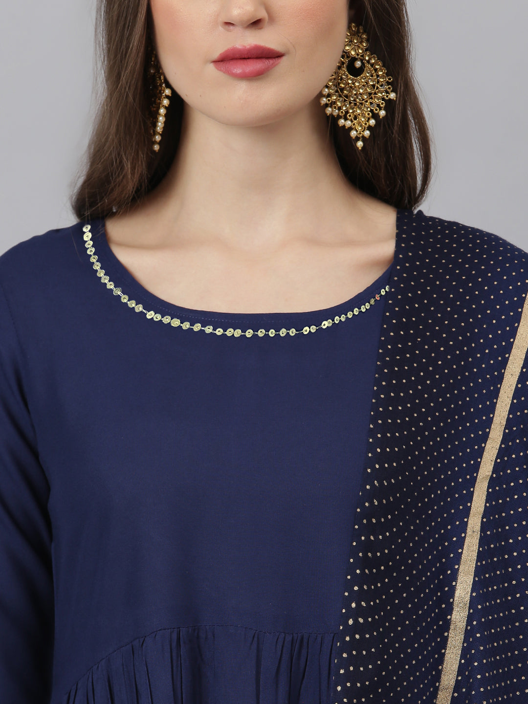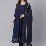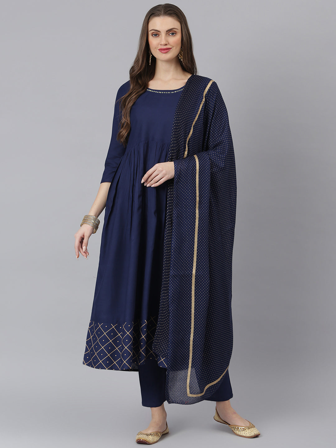 Women Checkered Rayon Flared Kurta Pant Dupatta Set (Pre-Order)