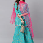 Women Gold Printed Rayon A-Line Kurta Sharara Dupatta Set (Pre-Order)
