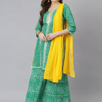 Women Bandhani Print Cotton Straight Kurta Sharara Dupatta Set (Pre-Order)