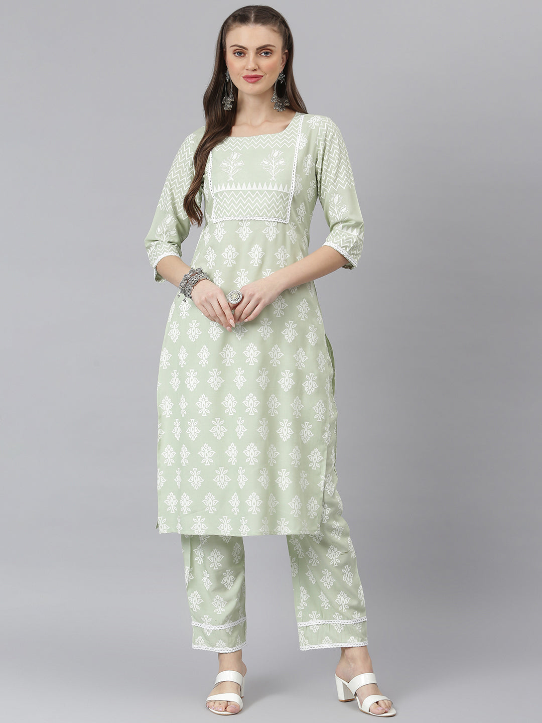Women Floral Print Rayon Straight Kurta Pant Set (Pre-Order)