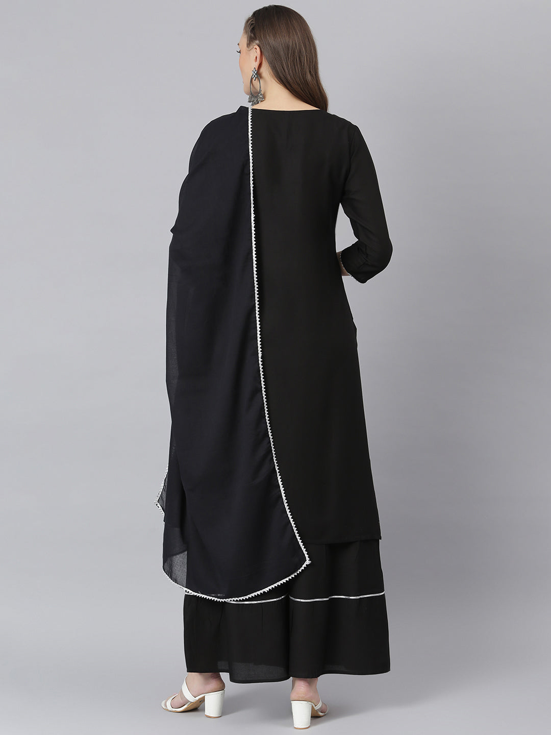 Women Printed Rayon Straight Kurta Sharara Dupatta Set (Pre-Order)