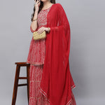 Bandhej Printed & Embroidered Kurta Sharara Dupatta Set (Pre-Order)