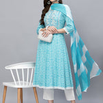 Bandhej Printed & Embroidered Anarkali Kurta Pant Dupatta Set (Pre-Order)