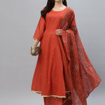 Floral Printed Cotton Anarkali Kurta Palazzo Dupatta Set (Pre-Order)