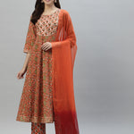 Floral Printed Cotton Anarkali Kurta Pant Dupatta Set (Pre-Order)