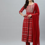 Printed Rayon Embroidered Anarkali Kurta Pant Dupatta Set (Pre-Order)