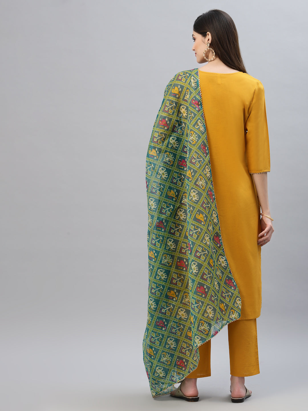 Solid Rayon Straight Kurta Pant Dupatta Set (Pre-Order)