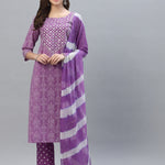 Bandhej Printed Rayon Kurta Pant Dupatta Set (Pre-Order)