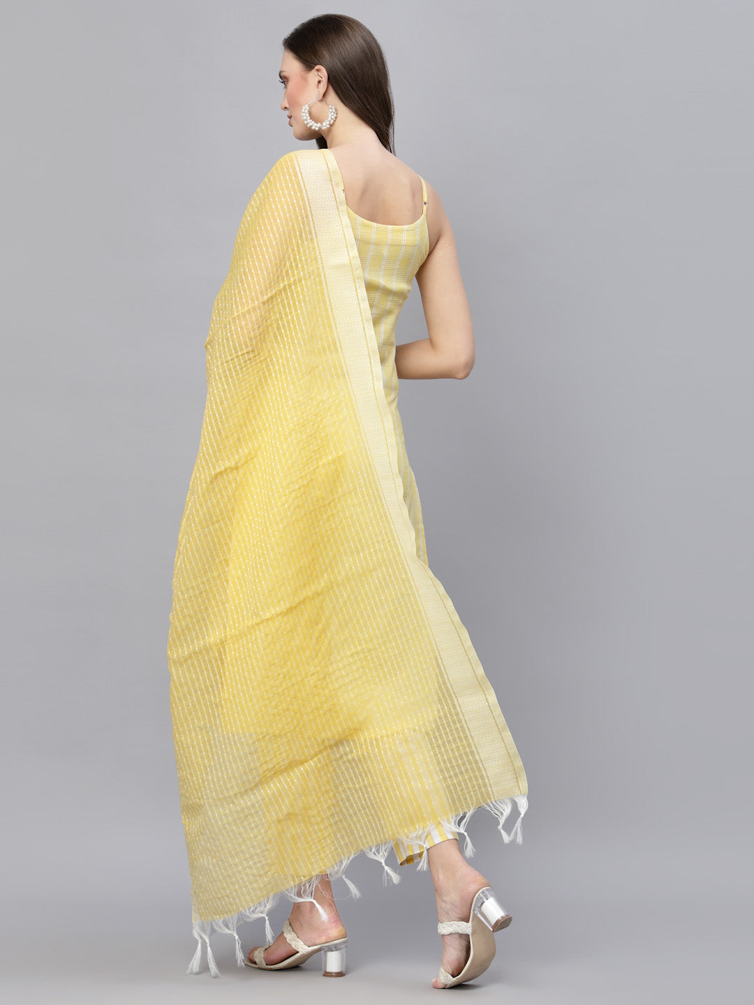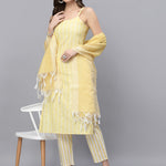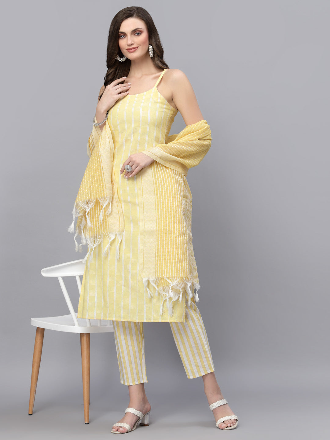Woven designed Cotton Blend Straight Kurta Pant Dupatta Set (Pre-Order)