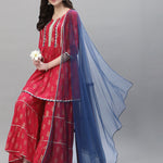 Gold Printed Rayon A-Line Kurta Sharara Dupatta Set (Pre-Order)