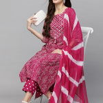 Bandhej Printed Rayon Kurta Pant Dupatta Set (Pre-Order)