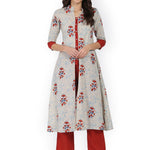 White & Red Printed A-Line Kurta with Palazzos