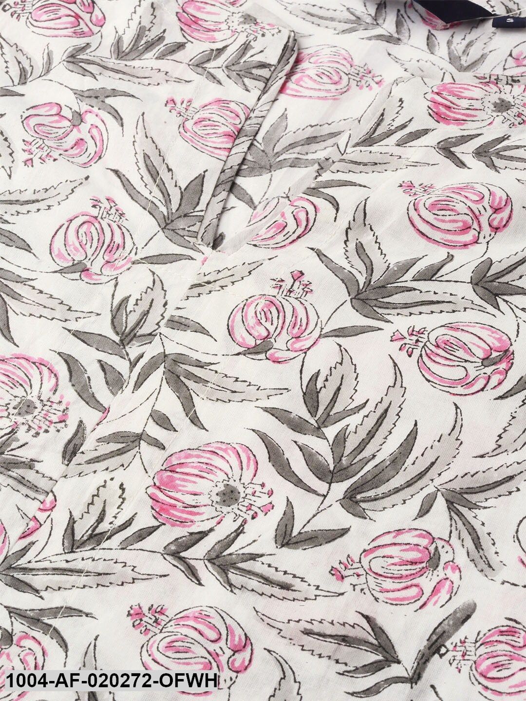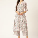 Off-White & Pink Floral Print A-Line Kurta with Palazzos