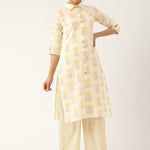 Cream-Coloured & Mustard Printed Kurta with Palazzos